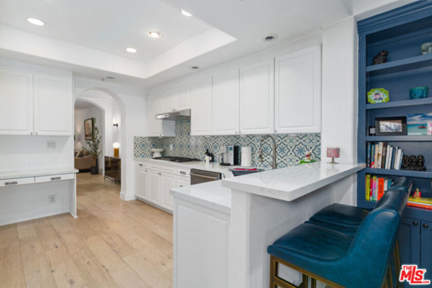 Stunning Brentwood Condo- Modern Elegance in Prime Location! Experience refined living in this beautifully updated 1,875 sq ft, 2-bedroom, 2-bath residence at the prestigious Beverly Court. Freshly installed new engineered hardwood flooring flows throughout, creating a warm and inviting ambiance. The fully updated kitchen features sleek stainless steel appliances and quartz countertops. Both bathrooms have been exquisitely renovated with modern fixtures, designer tiles, and spa-like finishes. Relax by the updated fireplace mantle, a focal point in the expansive living area, or entertain at the stylish custom-built bar, ideal for gatherings. Additional highlights include recessed lighting, generous closet space with built-in organizers, and in-unit laundry. Residents enjoy a gated parking garage with two reserved spaces, plus access to a community pool and serene courtyard. Located just one block from vibrant Brentwood Village, with its premier dining, boutiques, and cafes, and minutes from UCLA, the Getty Center, and West LA's finest attractions. This move-in-ready gem offers a rare blend of modern upgrades and an unbeatable location don't miss this Brentwood treasure!