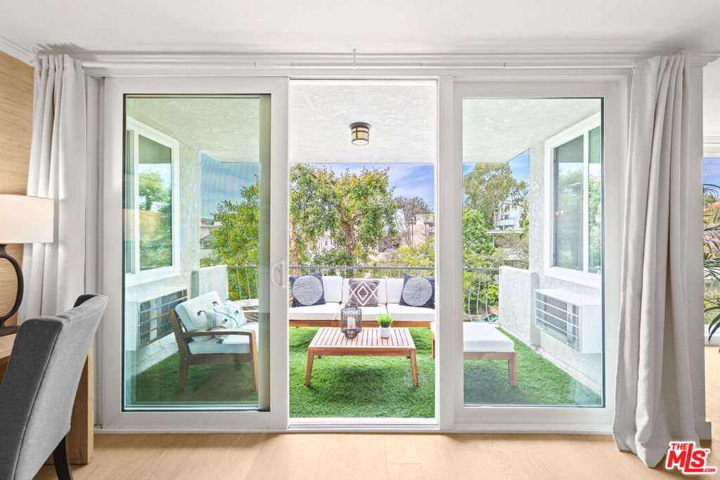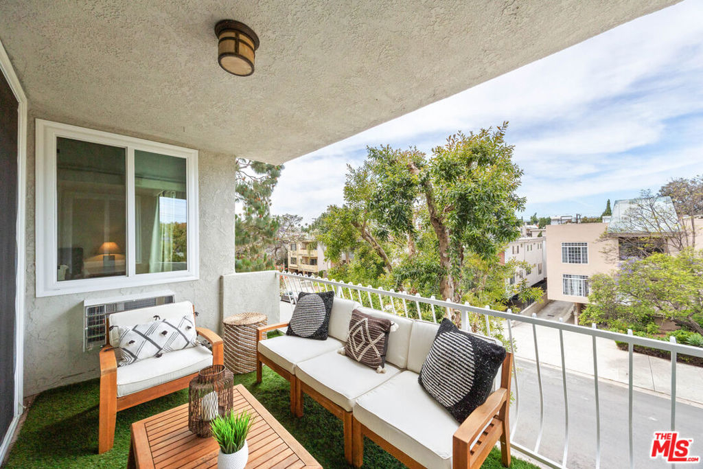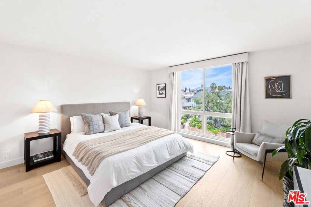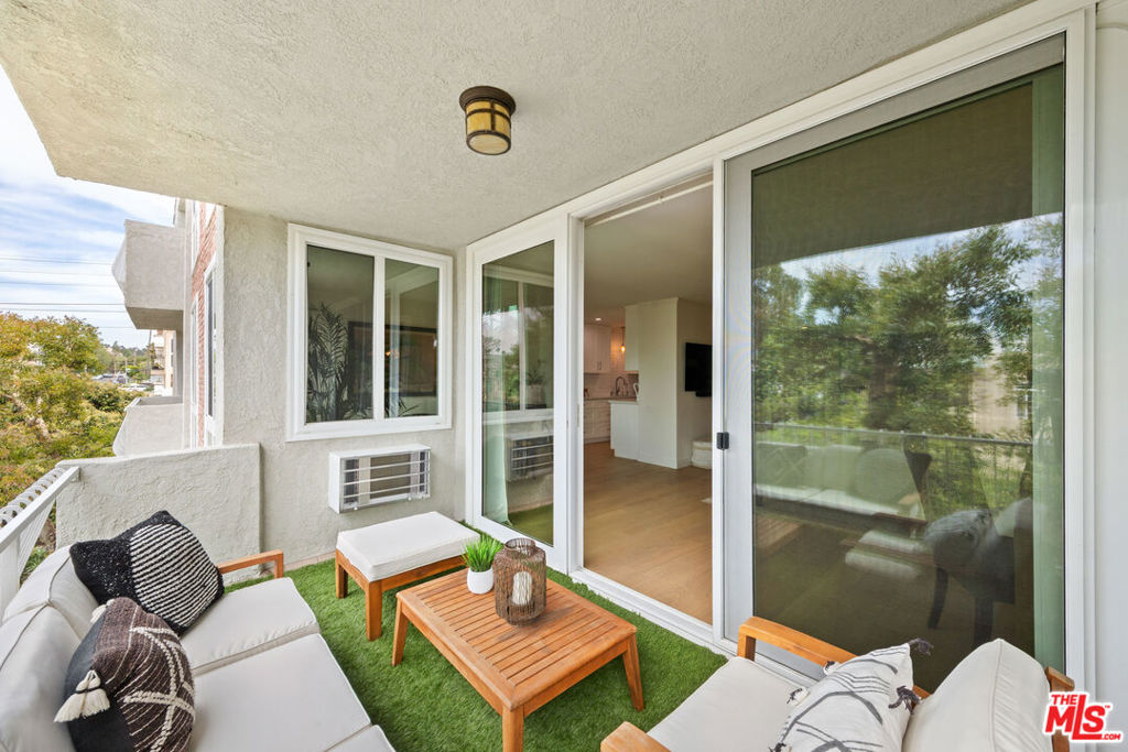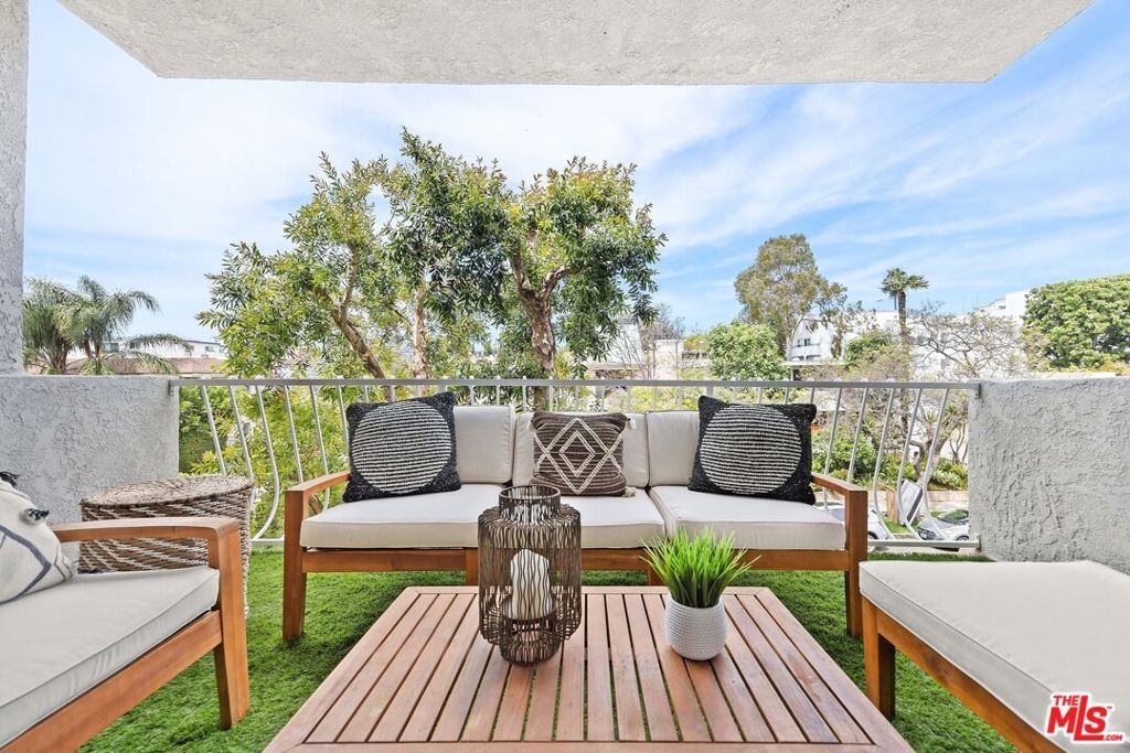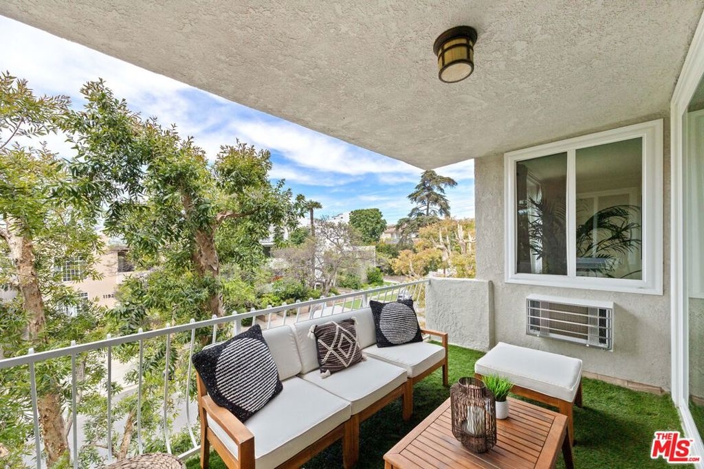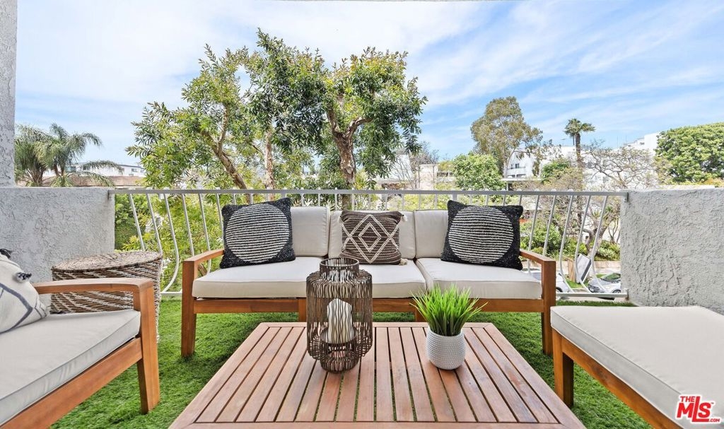 Welcome to 11918 Kiowa #201, a beautifully updated, front-facing residence offering refined luxury and effortless sophistication in the heart of Brentwood. Surrounded by tranquil, tree-lined vistas and blooming jacarandas, this elegant 2-bedroom, 2-bath condominium blends serenity with vibrant city living. Bathed in natural light, the open-concept floor plan is framed by floor-to-ceiling double-pane windows and enhanced by newly installed wood flooring, creating a seamless indoor-outdoor experience. The spacious living area opens to an oversized private balcony, offering a peaceful outdoor setting ideal for morning coffee, unwinding in the evening, or enjoying quiet moments throughout the day. The designer kitchen features custom white cabinetry, pull-out storage, quartz countertops, custom lighting, and new stainless-steel appliances, flowing into a generous dining area ideal for both intimate dinners and effortless entertaining. The primary suite offers a calming, elevated ambiance with views of surrounding treetops and overlooks the inviting private balcony, complemented by a walk-in closet and a spa-inspired bath with soaking tub and shower. The secondary bedroom is thoughtfully positioned for privacy and features generous closet space, along with a beautifully updated en-suite bathroom with refined finishes, creating a welcoming retreat for guests or a sophisticated home office. Additional features include in-unit laundry, a formal double-door entry, two side-by-side parking spaces, and abundant storage. Residents enjoy a well-maintained building with controlled access, elevator service, a renovated lobby and recreation room, secure garage parking, lush landscaping, and earthquake insurance. Perfectly situated with a Walk Score of 88, just moments from Brentwood's premier dining, boutiques, and everyday conveniences along Wilshire and San Vicente, this home offers an exceptional blend of comfort, style, and location.
