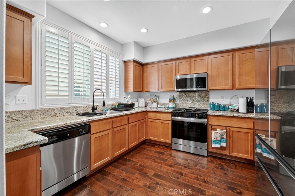 Beautiful Townhouse in beautifully landscaped development "Olive Glen" made for an exceptional living experience! Perfect for families and anyone looking for additional space. All three levels have been updated and maintained in designer condition by the owner so it is in move-in condition with hardwood floors, tile, modern window covering that allowing natural light throughout. The home has a 3rd level Tech Room that can be used as an office or studio space - your imagination is your potential!! Love and care shows the moment you walk into the foyer to see the lower level bedroom and bath! Gorgeous touches on all levels and a view from the 2nd floor balcony. The home has it's own park, children play area, covered picnic area w/BBQ and running/walking trails for residents and their events! This is a must see for living close to freeways, a beautiful historic golf course, shopping centers, Sofi Stadium and various options for your transportation choices!