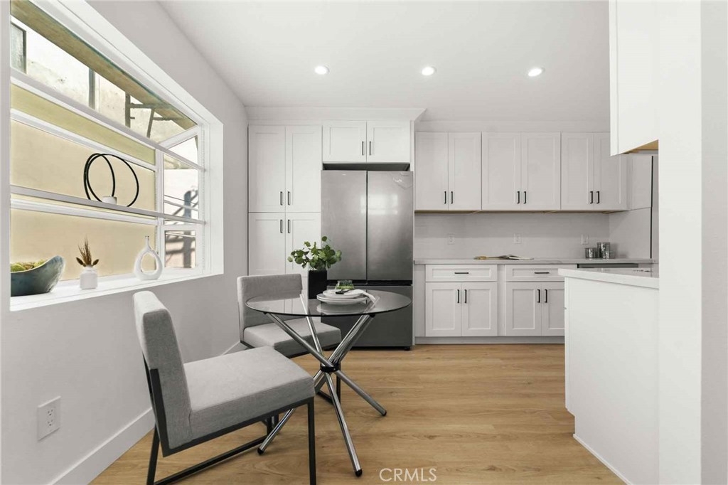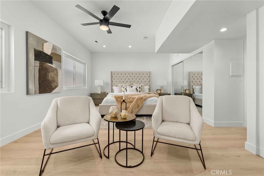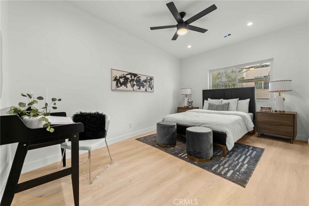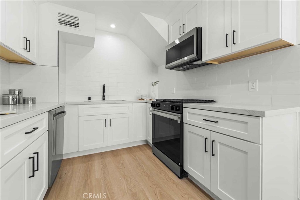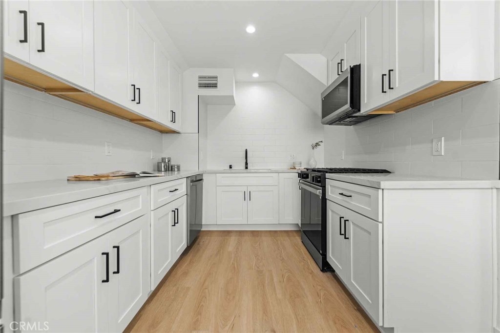 Don't miss this incredible rooftop deck opportunity in the heart of West Los Angeles! This beautiful 3 bedroom, 3 bathroom property features a unique multi-level floor plan with upgraded finishes throughout. All levels showcase new luxury vinyl plank flooring, quartz countertops and new hardware. The main level is equipped with high ceilings, sliding door balcony access and a large living room with new fireplace tiling. The living room opens to a bright kitchen, equipped with new quartz countertops, sink and faucet, and new stainless steel Samsung appliances. All rooms feature recessed lighting, bypass sliding doors and have remote controlled ceiling fans. Downstairs are two large bedrooms with adjacent bathrooms that are both upgraded with new tile, toilets, sinks, hardware and fixtures. Upstairs leads to a separate laundry room, an additional bedroom and bathroom, and access to a private rooftop patio. The rooftop patio features redone waterproofing and new stucco. The community exterior will soon feature new paint and new balconies. Additional property features include a new fireplace as well as direct access garage parking. Convenient to Santa Monica beaches, UCLA and area schools, public transportation and Metrolink, shopping, and major freeways!
