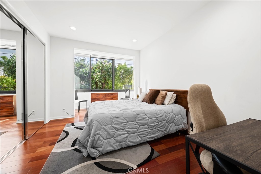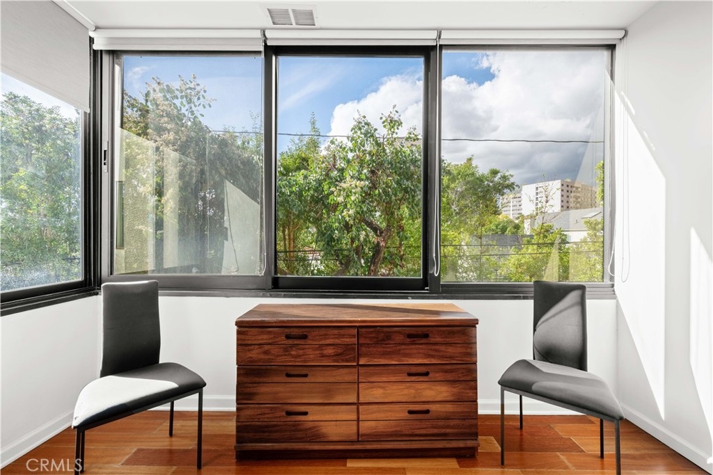 Welcome home to 1,628 SF of quiet living space touting beautiful, large open rooms warmed by hardwood floors and two gas fireplaces. Unit 405 is stunning - A west facing 2 bedroom, 2.5 bath back unit. The living room and fireplace, the wet bar, the dining room, the kitchen and enclosed patio, the oversized windows, all conspire to create an exceptionally inviting space ready for a busy life. Imagine the holidays and celebrations! When it's time to rest, the main bedroom is a lovely, spacious and private retreat with a fireplace, two walk-in closets, a gorgeous remodeled en suite and inspiring views. Neighboring trees and blue sky are outside every window. There's also a large guest bedroom with equally impressive views. Another beautifully remodeled bath is across the hall. A third half bath, off the foyer, has a touch of breathtaking whimsy in its modern jungle design. This delightful home has many practical attributes, too: a gated garage, high ceilings, dual paned windows, central heat and air, plenty of closet space, recessed lighting, in unit W/D, a breakfast nook, stainless steel appliances and granite countertops. Plus, getting groceries from car-to-kitchen is simple when the parking spaces are adjacent to the door entering the building. There's also a gym, pool, spa and sauna. Living in a winning location makes walking fun and commuting a breeze. Spend more time enjoying life and less time driving, with the 405, Westwood Village, UCLA, the Century City Mall, parks, and more, all nearby.