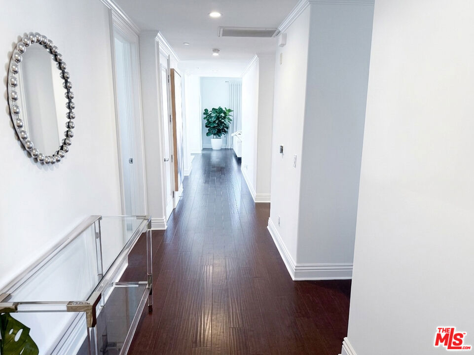 Prime WLA location. Brentwood/Santa Monica adjacent. Spectacular TOP FLOOR CONER UNIT, HIGH CIELINGS w/ balcony. No common walls. Quiet and Private. Two ensuite generously sized bedrooms. Two Door entry, with hall powder room in newer building. High ceilings throughout with recessed lighting and private balcony that leads to a wonderful North-East exposure with views from Brentwood to Century City. Primary suite includes dual walk-in closets and a large spa like bathroom, complete with a separate shower and deep soaking tub. The second bedroom features an en-suite bathroom with a glass-enclosed shower. Kitchen Bosch stainless steel appliances, custom cabinets, Caesar stone counters and Greystone floors. Laundry is in unit with washer and dryer hook-ups. Garage controlled access building w/ gated parking for 2 cars tandem. Located in a small, 7-unit. Front entrance has an "ADA-compliant ramp," "curb ramp" compliance. 2 Garage controlled access designated disabled person garage parking in building for residents. *Balcony inspection approved December 2024. *Romantic fireplace gives off considerable heat. "Fireplace" is to be considered decorative only.