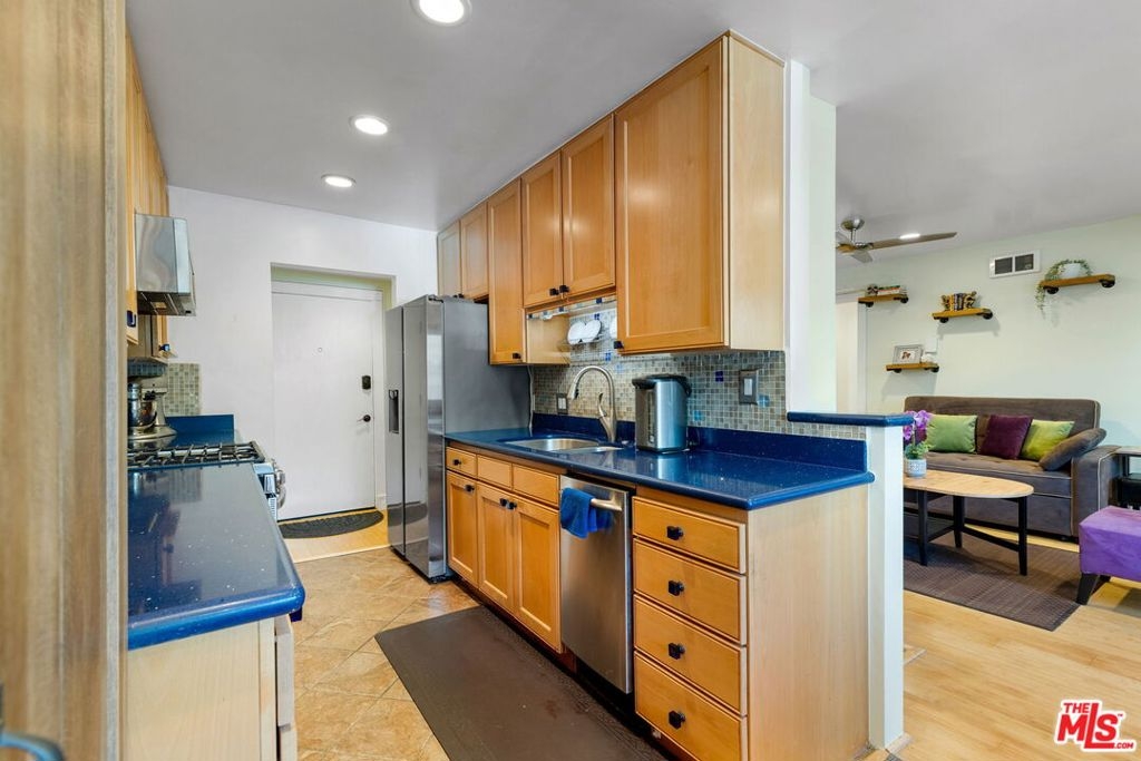 Fantastically located, bright and spacious Westside condo right around the corner from all that Sawtelle's Japantown has to offer, and minutes from Santa Monica, Brentwood & Venice. This inviting home's kitchen delights with blue quartzite countertops, updated cabinets, modern backsplash and a suite of included stainless steel appliances like a double-oven/air fryer, 18" dishwasher, and fridge with water/ice on the door. In the primary bedroom you'll find a newly remodeled bathroom and a spacious walk-in closet. The hall bathroom has also been tastefully updated. The living room's fireplace hearth brings a modern elegance and warmth to the space. And if it's convenience you crave, this home has plenty to offer, from the included all-in-one washer/dryer, to app-controlled recessed lighting throughout, door-activated closet lighting, app-controlled heating, key-fob building entry and more! Enjoy relaxing or entertaining on your front-facing balcony with privacy trellis. Feel safe and secure knowing that building surveillance covers the garage, common area and the exterior of the building. A Ring doorbell at your front door is also included for your safety and convenience. Storage is no problem with multiple spacious closets in the home as well as a generously sized storage room in the secured underground garage.Solid reserves, a well-run HOA and a responsive professional management company add to the overwhelming appeal of this home. And bring your pets! This building loves fur babies!