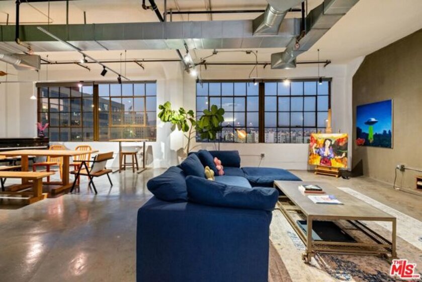 Perched high on the 8th floor, the industrial corner loft strikes a captivating balance between historical charm and modern functionality. The airy and sunbathed New York-style loft boasts tall gallery walls, high ceilings, exposed concrete columns and polished concrete floors. Wow factor! 2 walls of original oversized steel casement windows rendering mountain views and spectacular sunsets. The spacious semi-open floor plan features 1 enclosed bedroom. The kitchen is large. 2 full bathrooms with each having a soaking tub. Washer/dryer combo in unit. Bonus! A large walk-in closet. Rare! A dedicated subterranean parking space within the complex PLUS a storage unit in the basement. As part of the unique urban community of Santee Village, amenities to complement your lifestyle, whether you desire to unwind or entertain, include the following: Rooftop with 360 degree views of Los Angeles, sun deck, BBQ grills, gym, rooftop basketball court, driving range, rooftop pool and spa.Within walking distance to award winning restaurants, museums and the best coffee shops. Across the street from the Netflix featured Sonoratown. Conveniently, within a block of Jason's Wine & Spirits, Broken Mouth, Starbucks, a yoga studio, art galleries, a food hall and a dry cleaner. A stone's throw away to the Metro Station, L.A. Live, Crytpo Arena and freeways. In the heart of all the action, but yet, quiet and peaceful in the loft, making this home a unique urban sanctuary. Listed on the National Register of Historic Places, the Textile Building is a former factory building, boutique, 12-story, 69-unit Gothic Revival Landmark overlooking the Fashion District in Downtown L.A. Listed under the Mills Act - earning homeowners generous savings on property taxes. The Mills Act automatically transfers to the new homeowner.