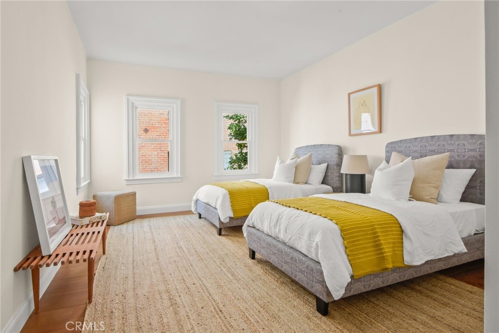 Remodeled 2025 Mediterranean Revival–style condo located in a private, gated community of only four units in Los Angeles Wilshire Center Area ~ Set above the street on an up-slope lot, this home offers a secluded and secure setting with an automatic swing gate for entry ~ Thoughtfully updated with modern materials while preserving original architectural charm ~ Features include 9-foot ceilings throughout, brand-new electrical and plumbing systems, and custom cabinetry with high-end appliances ~ The formal dining room opens through French doors to a private balcony, providing great indoor/outdoor flow ~ This spacious unit offers 3 bedrooms, 3 bathrooms, along with a separate laundry/utility room with deep sink ~ Additional upgrades include new central A/C and heating, dual access from front and rear parking areas, and 2 assigned parking spaces ~ Prime Koreatown location close to Hancock Park, Hollywood/Melrose and Downtown LA. A perfect blend of classic Mediterranean character and modern convenience.