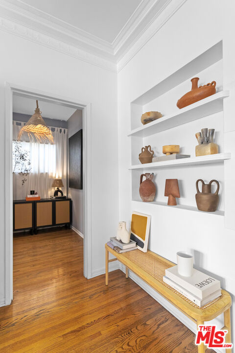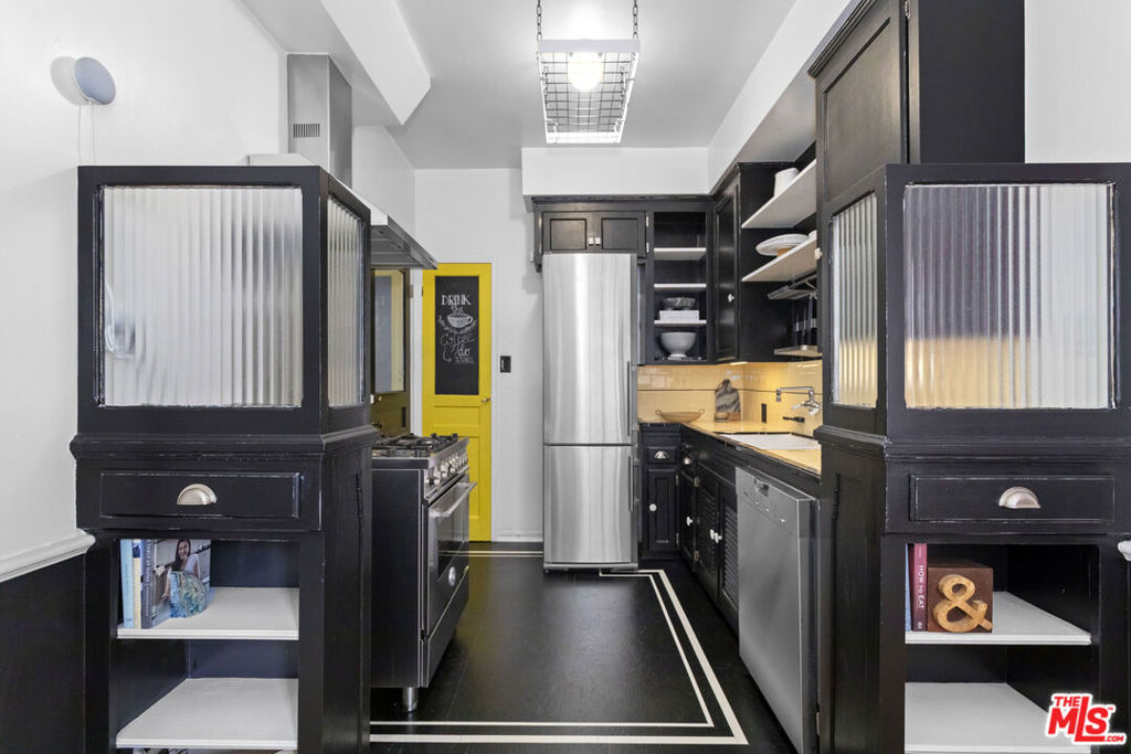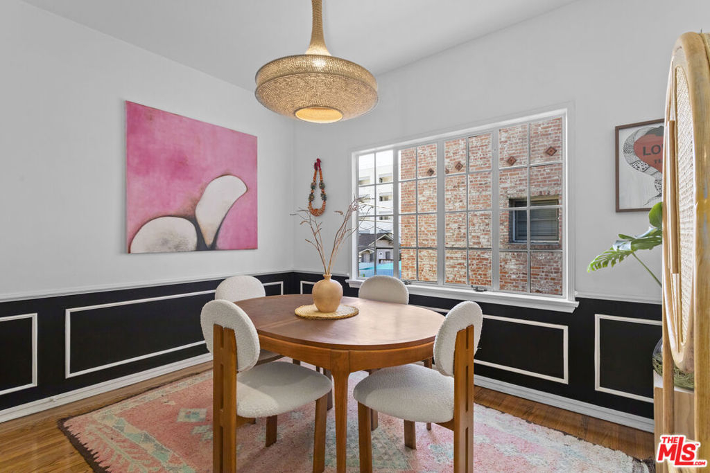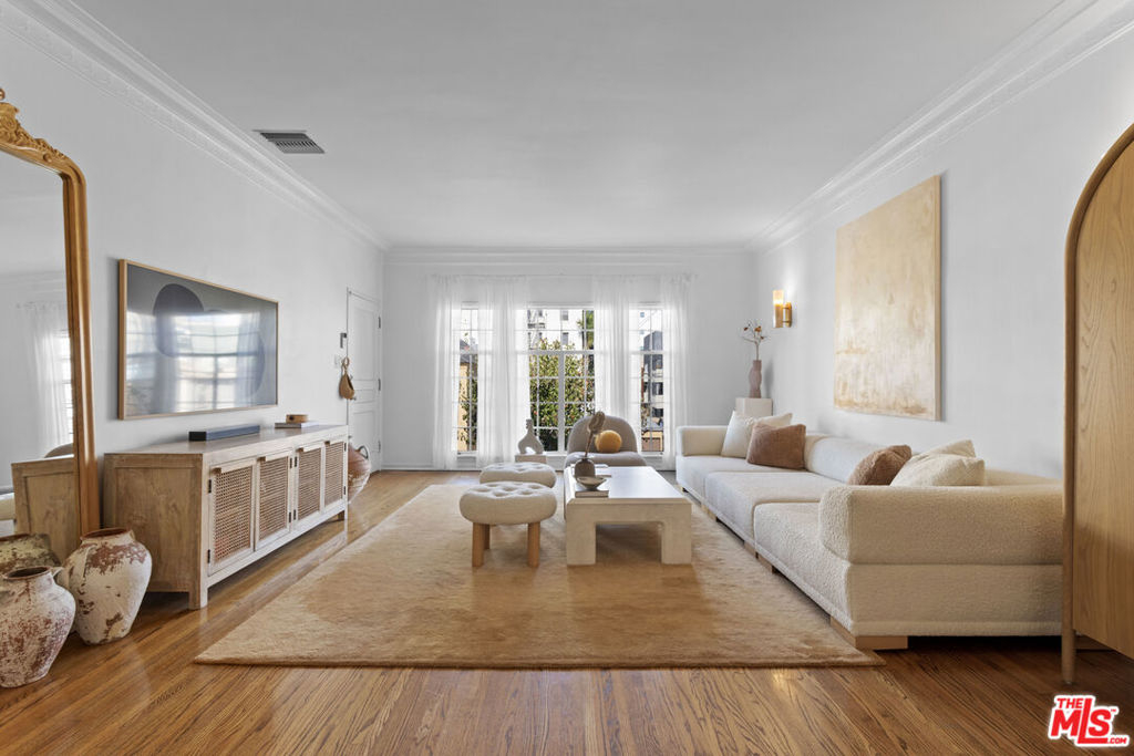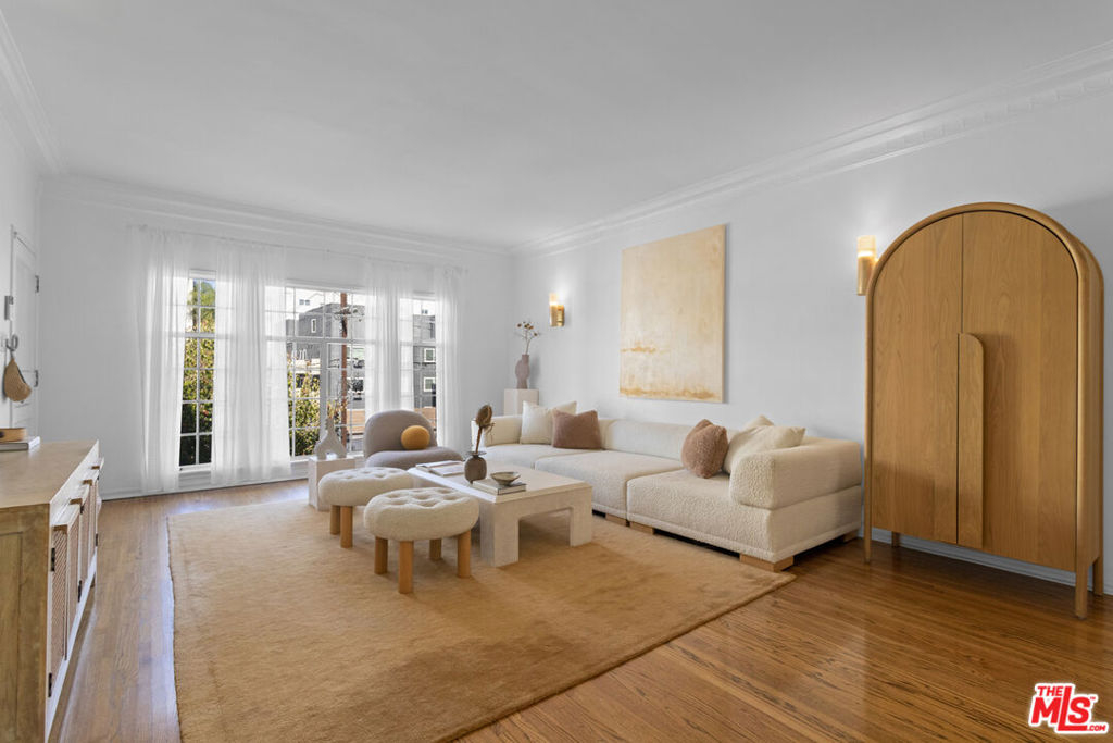 The stunning French Chateau is a small community of 10 condo units located in the heart of Koreatown. This rare 1937 French Chateauesque end-unit condo blends timeless character with thoughtful modern updates in one of LA's most vibrant neighborhoods. Its Mills Act designation affords the owner substantial property tax saving, an exceptional benefit that elevates this historic residence as both a lifestyle and investment opportunity. Classic architectural details include parquet floors, crown moldings, a crest-topped archway, vintage fixtures, original built-ins, and beautifully preserved kitchen and bath tiles. Every room reflects old-world elegance and its end unit placement fills each room with glorious natural light. Beyond the charming archway, the dining area opens to an updated kitchen with high-end European appliances, including a Bertazzoni range, Miele dishwasher, and Liebherr refrigerator. Modern comforts such as a newer central HVAC and in-unit laundry room with Miele washer and dryer, seamlessly elevate daily living. Other features include two designated parking spaces, EV charger, extra storage, and a shared laundry room. The French Chateau is within walking distance to Koreatown Plaza where you can find an H-Mart, a bakery, two coffee shops, a great food court and more. Other Angelenos' favorites like BCD Tofu House, Iki Ramen, Alchemist Cafe, and Southland Beer Bar are located nearby. This home also qualifies for the "Ladder Up" program which offers up to a $20,000 grant by City National Bank. Don't miss this rare opportunity to own a true architectural gem that effortlessly combines history, style, and modern living.