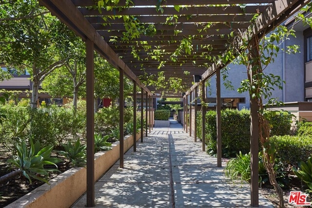 Fantastic spacious condominium located in beautiful Hancock Park. This 2 bedroom 3 bathroom condo proudly features high ceilings in the living room with nearly floor to ceiling glass windows that overlooks lush green trees that inspires serenity. This is a South facing unit, making this a very rare offering as it does not face any street and enjoys less noise. Updated in 2015, the kitchen features a clean modern look with custom cabinetry, stainless steel appliances, and granite countertops with bar seating along with a breakfast nook and patio. 2nd bedroom suite is located on the 2nd floor along with the Laundry Room. The master bedroom is found on the 3rd floor and it features high ceilings, abundant closet space, and has peaceful tree top views. The community landscaping is impeccably maintained with picturesque pergola walkways wrapped in mature ivy. This unit includes 2 side-by-side parking. Located within award winning 3rd Street Elementary School District.