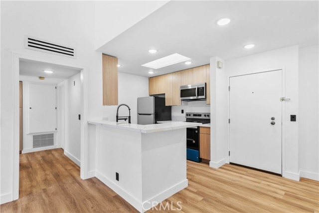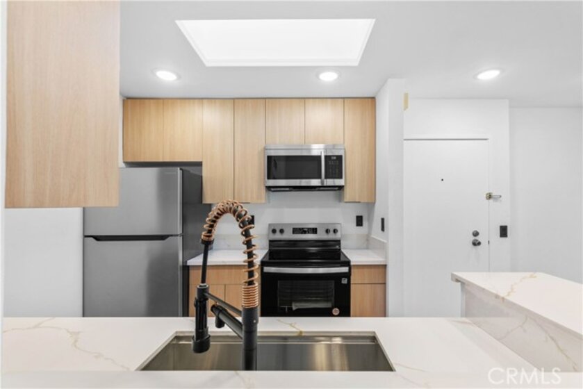 This beautifully remodeled top-floor one-bedroom condominium is nestled in the prestigious Catalina Terrace complex of Monterey Hills, minutes away to LA downtown or Pasadena easy access to 110 Freeway. Highlights include a spacious living room with a sliding glass door leading to a private balcony overlooking the tranquil lush garden and pool area, recessed lighting all over and a modern kitchen with stainless steel appliances and Quarts counters. The master bedroom boasts tall sliding mirrored closets and serene garden and pool views. Additional features include cathedral ceilings in the living room and master bedroom, a kitchen skylight, a generously sized balcony perfect for outdoor seating, central A/C and heating, secured entry, and gated underground parking with two side-by-side spaces. All remodeling including flooring & recessed lights are approved by HOA. Seller Financing Available!