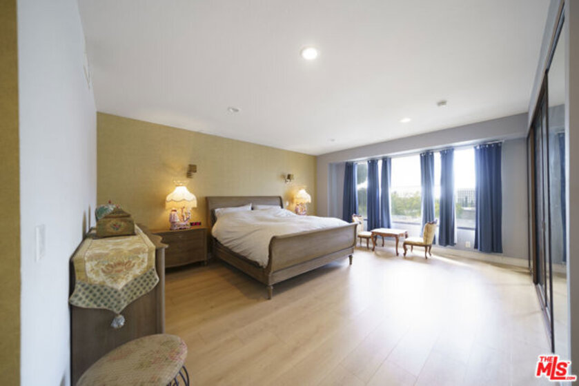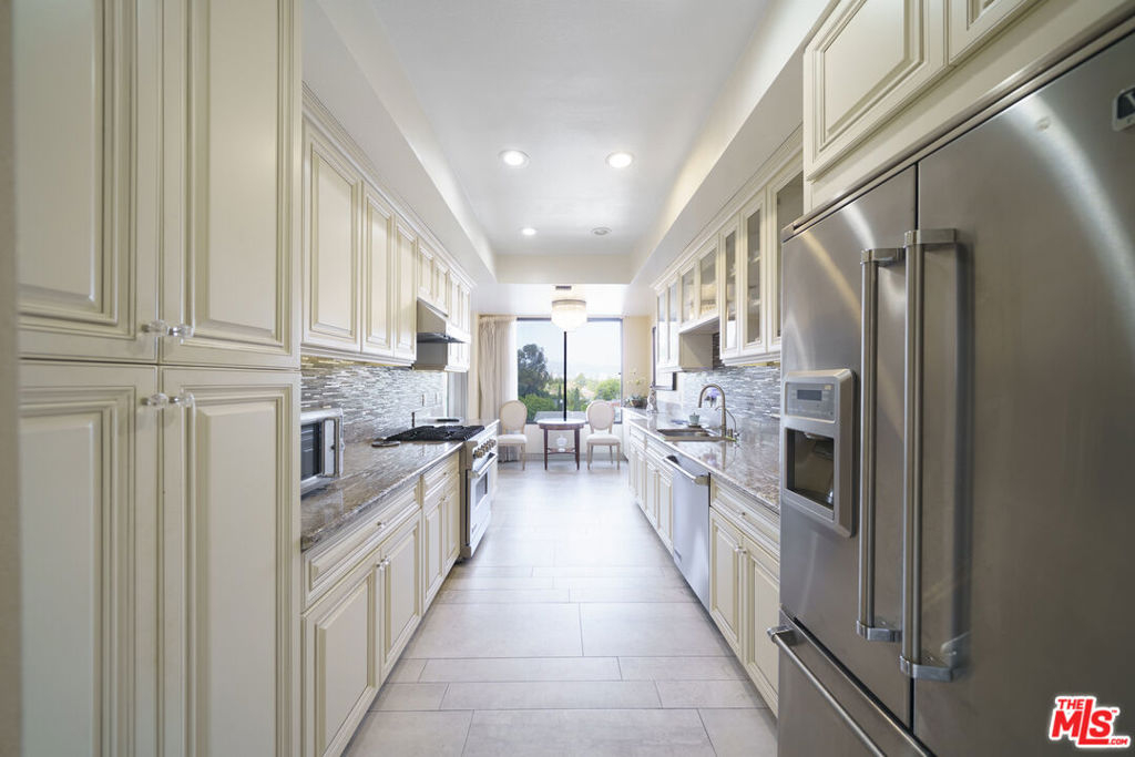 Welcome to this beautifully renovated 2,760 sq ft luxury residence, offering sweeping Hollywood Hills views from the 6th floor. Designed to feel like a private home, this spacious condo features two generous primary suites, each with its own private bath.The elegant interior showcases custom upgrades throughout, including Italian tile flooring, a dramatic stone fireplace, and beveled-glass French doors that fill the home with natural light.Enjoy breathtaking city and mountain views from the oversized private balcony, perfect for relaxing or entertaining.Additional highlights include a versatile den or office with wet bar, a separate powder room, two tandem garage spaces, private storage, and full-service amenities including a 24-hour doorman, pool, and spa.