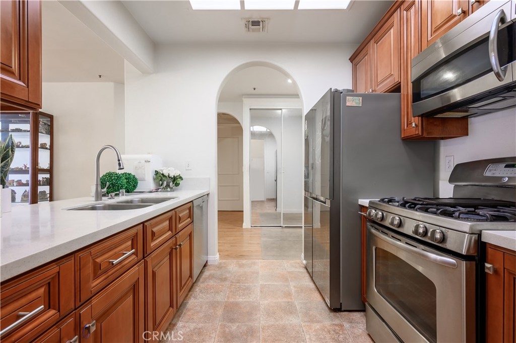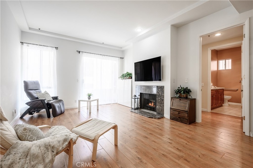 Come to this gorgeous condo located conveniently in the attractive Hancock Park region. This home boasts roughly 1,457 square feet of living space and is the largest model in its building. The home consists of a 2 bedroom 2 bathroom plan, along with several privileges such as a fireplace, pristine hardwood floors, and a high ceiling throughout. When you walk into the remodeled kitchen, your eyes will immediately set on the Stainless steel appliances and the quartz countertop. Step into the master bedroom, where you can see numerous wonderful features including a walk-in closet and a private bathroom completed with shower and spa tub. This model has  in-unit washer and dryer area, communal gym, and two parking spaces. The complex is also near the Larchmont Village, Wilshire Country Club, Paramount Pictures Studio, and 101 freeway. Don't miss out on this one-of-a-kind home!