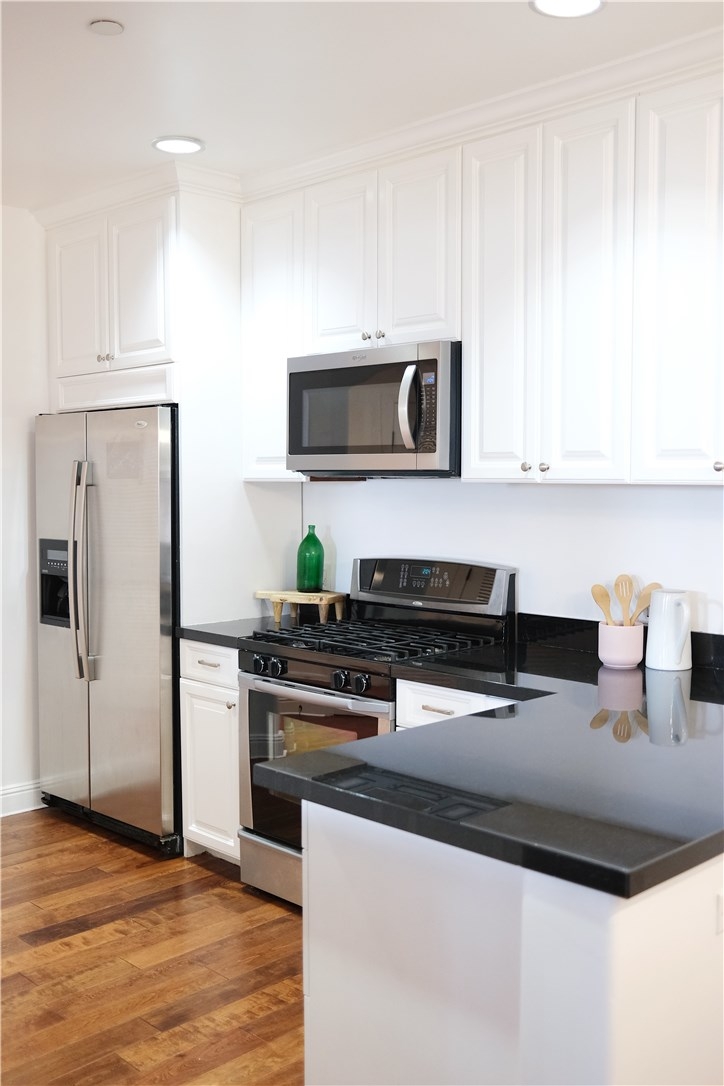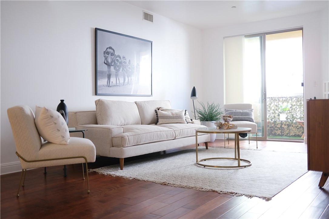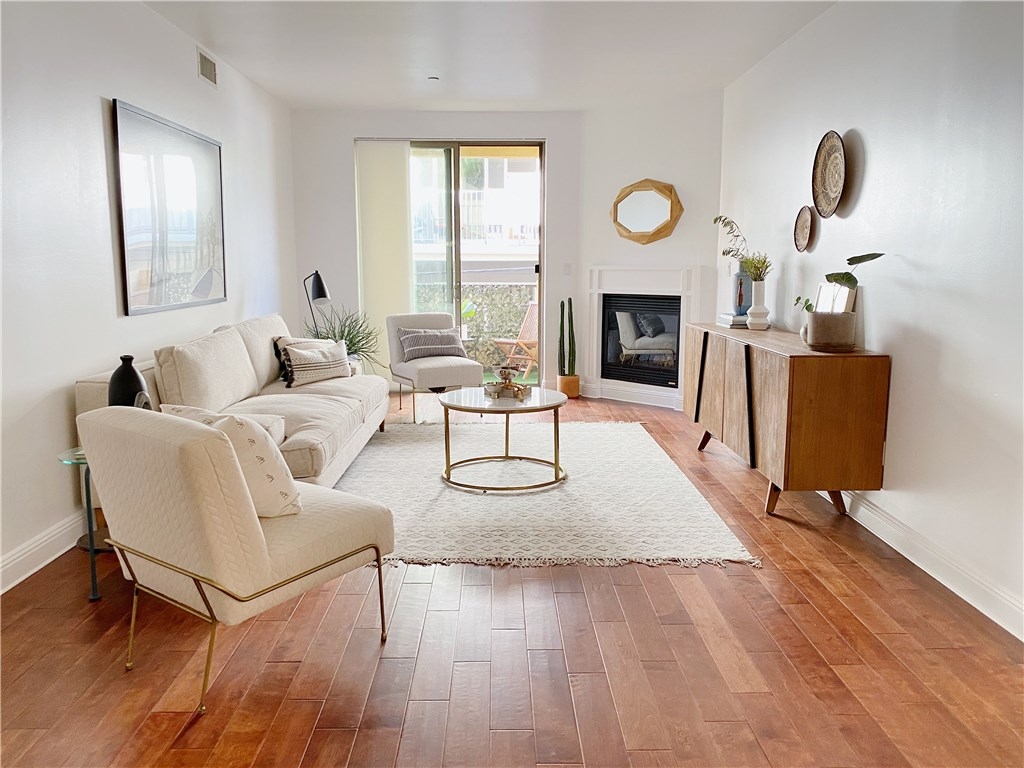 Beautifully maintained and centrally located two bedroom, two full bathroom condominium located just minutes away from Larchmont Village and Hancock Park. You are first greeted in the beautiful lobby that gives an amazing first impression. Built in 2008, this classic contemporary style unit has plenty of character with arched doorways and hardwood floors throughout the kitchen and living room. The fireplace in the living room is perfect to provide that cozy and comfortable vibe this holiday season. The living room also leads to the balcony so you can have your morning coffee or dinners al fresco. The kitchen features stainless steel appliances including a brand new dishwasher. The spacious master bedroom features a large walk-in closet with plenty of room for your clothes and accessories. A washer and dryer is conveniently located inside the unit and the condo also features central air conditioning and heat with a Nest thermostat. There is tandem parking for two vehicles in the gated parking garage. Don't miss this opportunity to live in a beautiful turn-key unit!