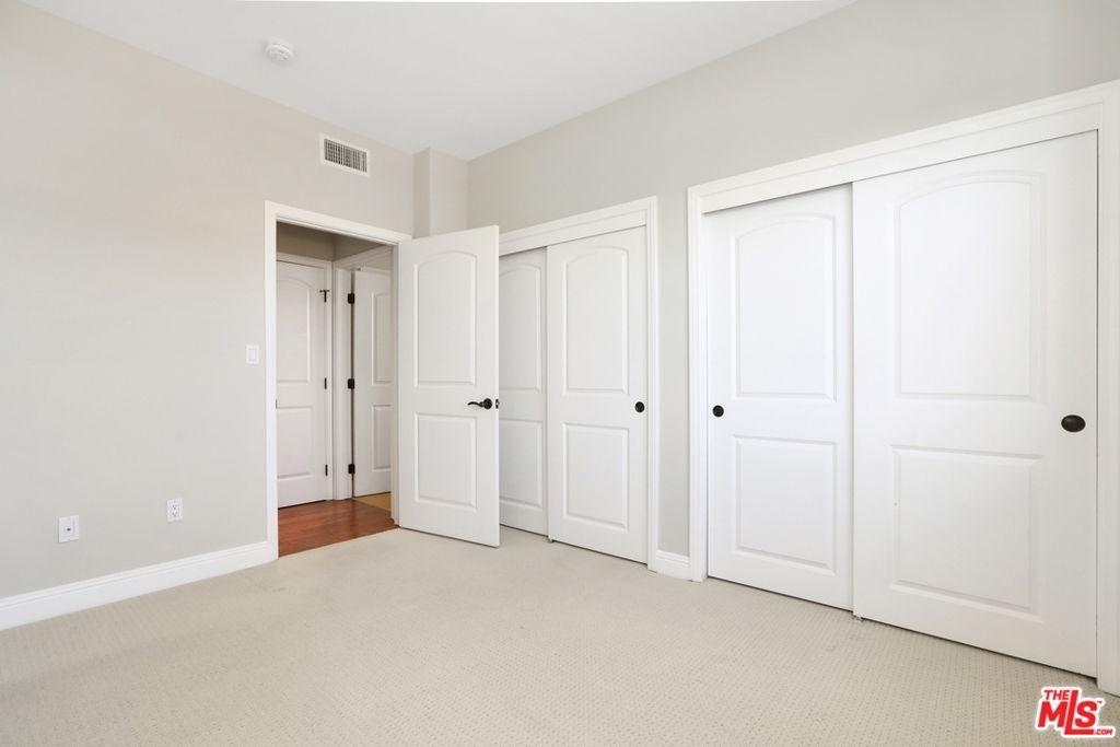 An iconic movie studio as a neighbor. A building layout with inviting courtyard architectural design perhaps inspired by a certain Melrose Place based TV show. HOA dues so reasonable, upgrading to the sportier model car which you can park in your double deep tandem garage spot may be a no brainer. Welcome to Rosewood Villas and this coveted 2 Bedroom/2 bath top floor corner unit with many special features: extra tall ceilings, skylights filled with bright natural light, luxury stainless steel appliances, in-unit laundry including, pretty maple hardwood floors, warm fireplace and private balcony for outdoor breathing. Large floorplan includes dining area, gourmet galley kitchen with custom cabinetry and over-sized granite counter-top large enough for work (and happy hour). Immaculate and move-in ready.
