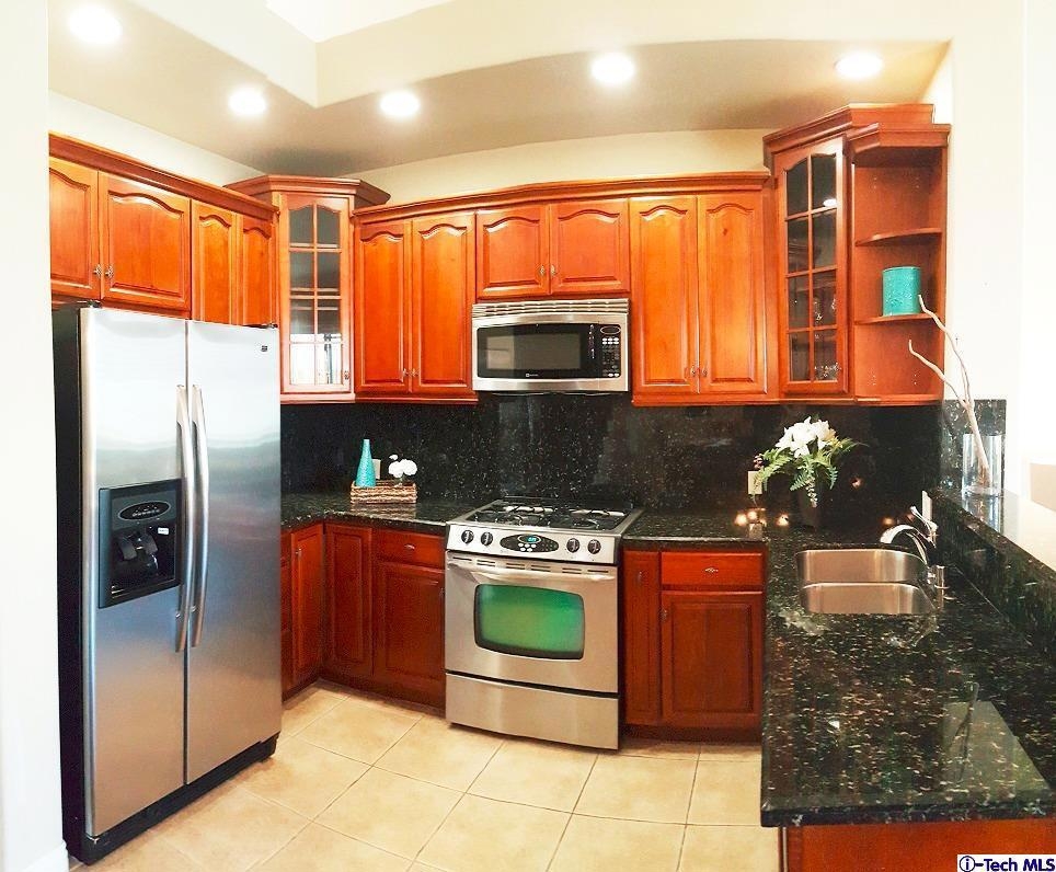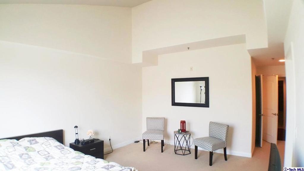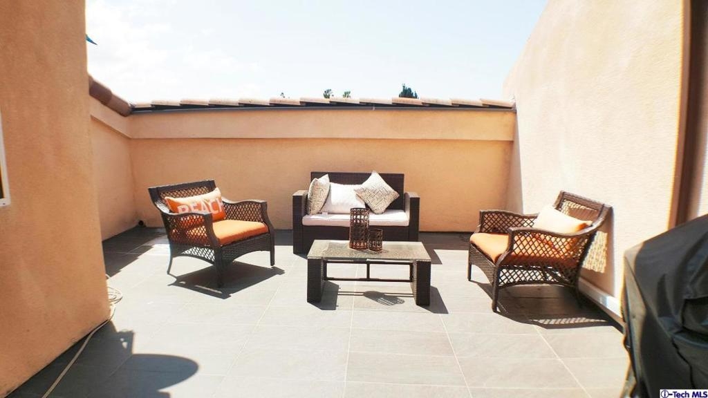 Price reduced for fast sale! Beautiful and luxurious, top-floor penthouse unit in Koreatown. High ceilings in the kitchen and adjoining dining and living areas.Staircase with intricate iron hand railing leads to den and private patio, perfect for BBQing. Large main suite with vaulted ceilings. Suite bath has separate, travertine tile bath tub and shower, and dual sinks with granite countertop. Two additional bedrooms and a full bath, laundry area. Kitchen has wood cabinets, granite countertops, stainless steel appliances, and recessed lighting.