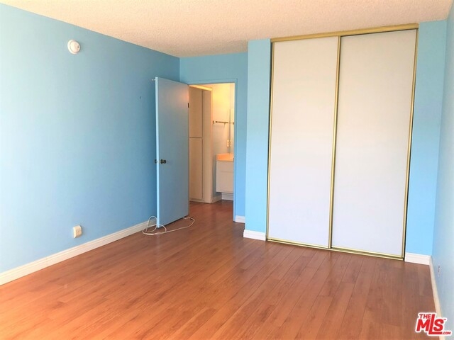Top floor condo at Sycamore Villas with balcony to the courtyard, facing south. The unit features an open floor plan with a living room, dining room and kitchen, and a spacious 1 bedroom/1 bath. Laminate hardwood floors, lots of closet space. The unit has 1 covered parking space in the subterranean garage. Building has newer roof, copper pipes, heated pool and sauna, recreation room, large laundry room, earthquake insurance, and 24 hour security access. Building is FHA approved.