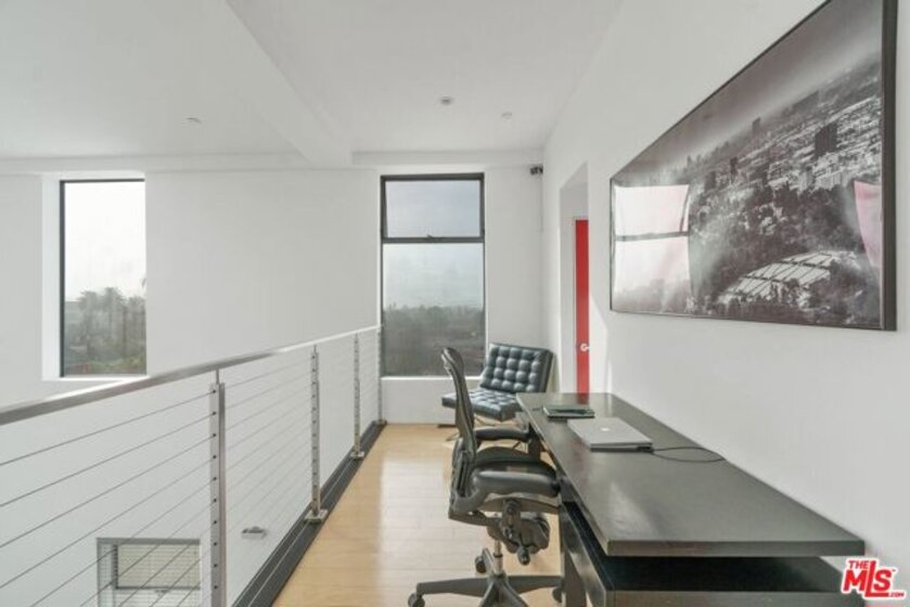 Experience sophisticated living in this stunning two-story corner penthouse loft with 2 bedrooms and 2 bathrooms, designed by internationally renowned award winning architect Lorcan O'Herlihy. Ideally situated in the heart of the highly sought-after Hancock Park / Larchmont Village neighborhood, blending architectural drama with effortless comfort and chic details, this residence showcases soaring 19-foot ceilings and an expansive open floor plan designed for both entertaining and everyday living. Walls of windows flood the space with abundant natural light, highlighting the loft's airy scale and modern design along with seamless indoor-outdoor flow, highlighted by the spacious and private patio offering breathtaking panoramic views stretching across the Westside skyline and the iconic Hollywood Hills the perfect setting for morning coffee, sunset dining, or evening gatherings under the city lights. The thoughtfully designed layout offers exceptional versatility with open entertaining and private bedroom/work spaces on both levels including a luxurious primary suite, creating a true urban retreat that feels both grand and inviting yet functional and cozy. Features include the chef's kitchen equipped with Viking appliances and a glass door refrigerator, power shades, custom wall wine cooler, in unit laundry, generous closet spaces and secure parking for 2 cars. Positioned just moments from Larchmont Village's beloved boutiques, cafes, and restaurants, and conveniently close to major studios and entertainment hubs, this location delivers the very best of Los Angeles living. A rare opportunity to own a statement penthouse loft combining scale, light, views, and an unbeatable central location.