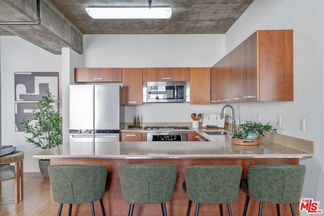 Experience the best of Downtown LA South Park living in this stunning 2 bed, 2 bath condo at Market Lofts! This industrial loft features an open-concept layout (no dividing bedroom walls) and a spacious balcony overlooking a serene courtyard. It's a corner unit with no shared walls for ultimate privacy. The primary bedroom boasts a huge walk-in closet, while the secondary bedroom also offers a walk-in-closet, providing ample storage space. Both bathrooms feature full bathtubs with showers for ultimate comfort. Enjoy modern conveniences with central AC/heat (replaced in 2023), in-unit combo washer/dryer, and a fully-equipped open kitchen with a refrigerator, oven, microwave, and more. Market Lofts offers unbeatable amenities, including a theater room, fitness center, pool, spa, BBQ area, and secured garage parking. With 24/7 front desk service, security, and on-site management, convenience and peace of mind come standard. Located in a prime spot near Whole Foods, Pershing Square, Crypto Arena, LA Live, The Bloc, The Metro, and an array of top restaurants and vibrant shops. Ralph's is conveniently attached to the building.