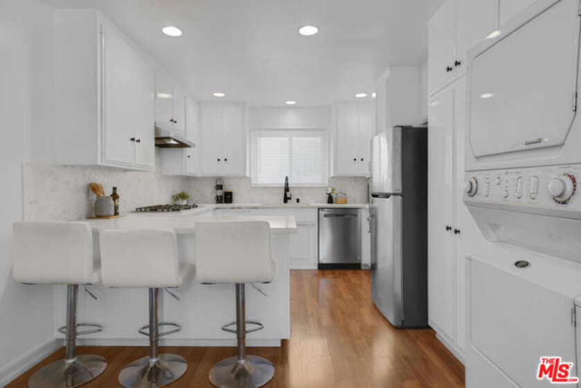 Welcome to this rare and spacious 3-bedroom, 2-bath residence in the heart of highly desirable Ladera Heights. Located on a quiet, tree-lined street in a beautifully maintained community, this bright and inviting condo offers over 1,600 square feet of comfortable living space. The home features in unit laundry, a generous open living area with a cozy gas-burning fireplace, large windows that fill the space with natural light, and a private balcony overlooking the peaceful courtyard and sparkling community pool. The kitchen is designed for both functionality and style, offering an island seating area, granite countertops, stainless steel appliances, stone backsplash, and abundant cabinetry. The spacious primary suite includes two closets with built-in shelving and a well-appointed en-suite bathroom with dual sinks and granite counters. Engineered wood flooring runs through the bedrooms, living room, and hallway, creating a warm and cohesive feel throughout the home. Additional highlights include two side-by-side parking spaces in a covered garage, two storage units, and access to a community room with a full kitchen perfect for hosting gatherings or special events. Residents also enjoy beautifully landscaped grounds featuring a relaxing pool, grassy areas, and mature trees that create a tranquil setting. This is a rare opportunity to own a spacious condo in one of Ladera Heights' most desirable communities, conveniently located near shopping, dining, and major commuter routes.