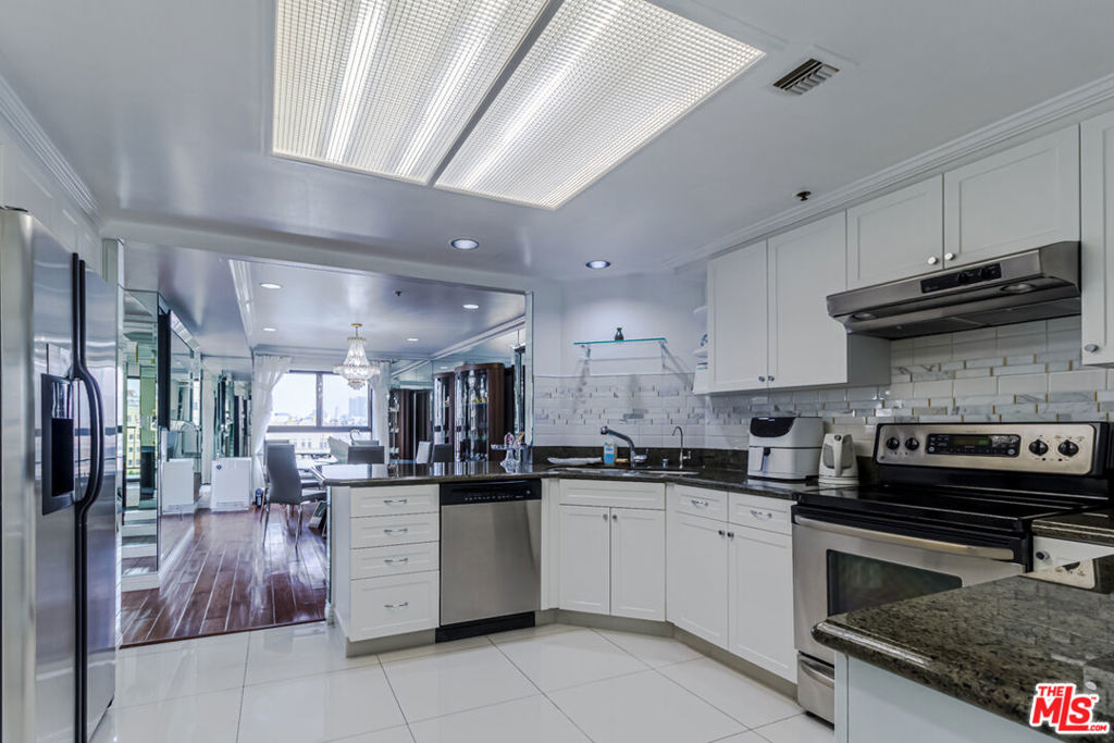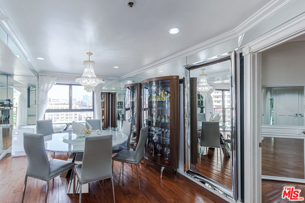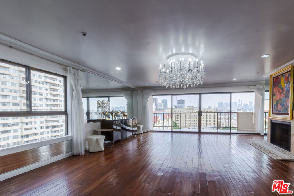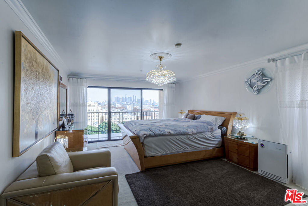 Gorgeous DTLA Night Views! Fully Upgraded 9th-Floor Condo in the Heart of Koreatown Experience elevated city living with panoramic views of Downtown Los Angeles from each room. This fully upgraded 9th-floor residence offers the perfect blend of luxury, comfort, and urban convenience. The grand entryway, adorned with custom marble flooring, flows seamlessly into the gourmet kitchen. The open-concept design features a bright and airy living room with a cozy fireplace and floor-to-ceiling glass doors leading to a spacious balcony overlooking the DTLA skyline. A striking oversized designer chandelier serves as the centerpiece of the living spacea one-of-a-kind showpiece included in the sale. Interior highlights include rich hardwood floors, custom wall mirrors, plush bedroom carpeting, granite countertops, designer backsplash, breakfast bar, custom cabinetry, and crown molding throughout. The dining area connects effortlessly to the family room, enhanced by a built-in wet bar for entertaining. The primary suite features double-door entry, a private balcony, walk-in closet, and spa-inspired bathroom with marble countertops, dual sinks, soaking tub, and separate shower. Building amenities include a beautifully designed lobby, pool, fitness center, and secure side-by-side parking. Select high-value furnishings, including two elegant chandeliers, are included making this home a true turnkey opportunity. Situated in Koreatown's most desirable location, just steps from acclaimed restaurants, markets, shops, entertainment, and public transit. A rare chance to own a statement residence with world-class views and amenities.