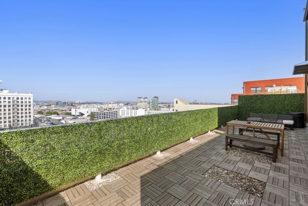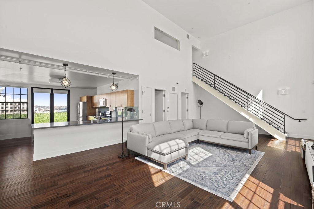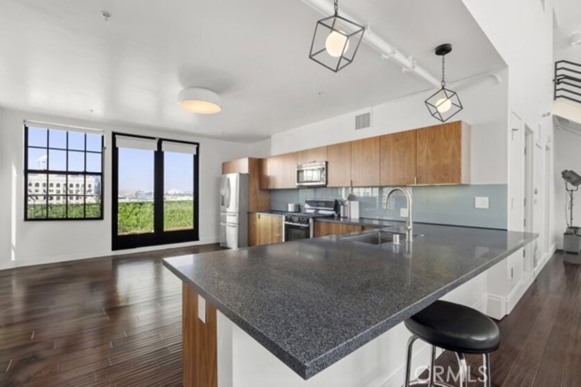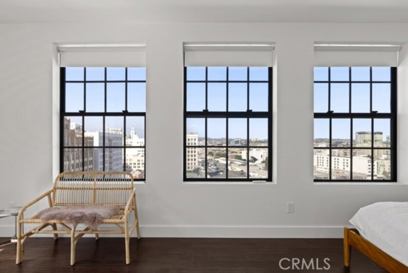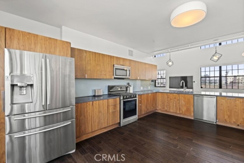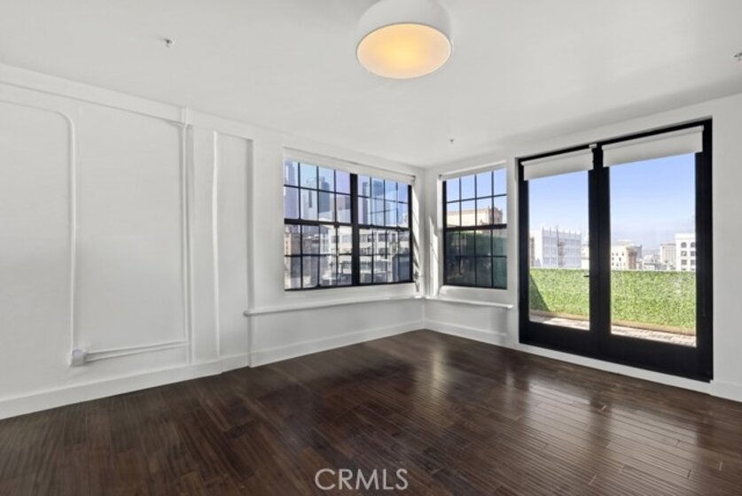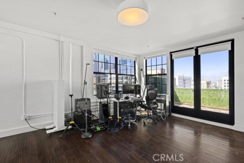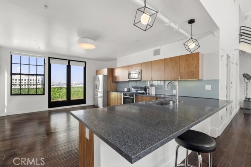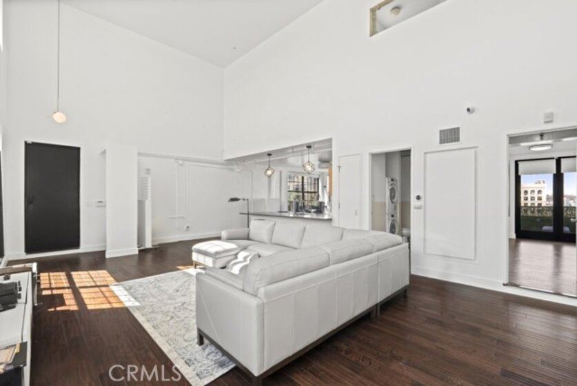 Two-story rooftop penthouse with 20 foot vaulted ceilings and panoramic views from every window of the downtown skylines, San Gabriel Mountains and Palos Verdes. With two private outdoor terraces, accessible from the kitchen and from both bedrooms. Building amenities include a 24-hour courtesy patrol and controlled access underground parking with your own 2 car parking space.