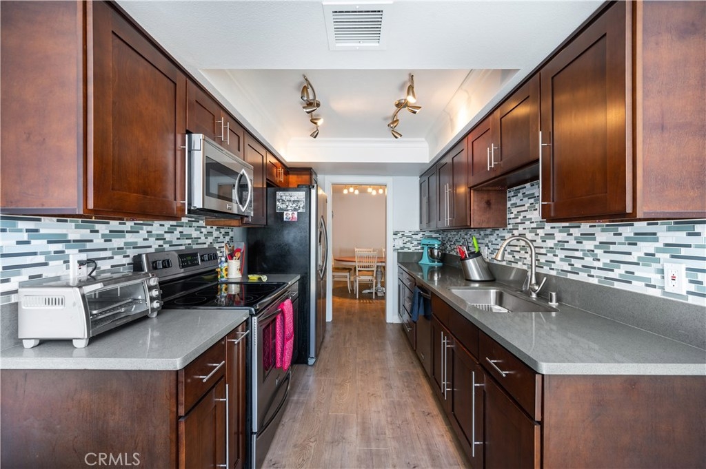 This beautifully remodeled, spacious 2 bedroom condo in Wilshire Galleria features distressed wood flooring, a contemporary kitchen with stainless appliances, 2 remodeled bathrooms, custom lighting, and contemporary finishes. There is an abundance of closet space in the master suite, second bedroom, and hallways which is a luxury in Los Angeles. The private laundry inside the condo includes a stacked washer and dryer, a newer AC system is perfect for those hot summer days, and your own private balcony allows for outdoor access from both the living room and second bedroom to sit back and relax. Located in the heart of Miracle Mile with plenty of amenities including gated 2-car assigned parking with ample guest parking spaces, additional private storage, a swimming pool, hot tub, sauna, and courtyard make this a perfect home sweet home. Enjoy views of LACMA and the George Page Museum and explore the local museums, La Brea Tar Pits, Farmers Market, The Grove, great restaurants, and so much more! Sit back and tour the property from the comfort of your own home with this 3D virtual tour. https://my.matterport.com/show/?m=MdFjY6q8iDV&mls=1