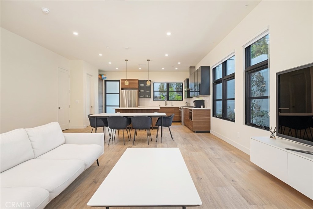 Welcome to this timeless modern Scandinavian Style Condominium, newly constructed in 2020. Nestled in the highly sought-after Hancock Park area, this exquisite residence offers a captivating glimpse into the luxury European lifestyle. As you step inside, be prepared to be embraced by high ceilings and a majestic wall adorned with expansive windows, allowing the warm embrace of natural sunlight to permeate every corner of your living spaces. This spacious and comfortable abode boasts Four bedrooms and three and a half bathrooms, where the master bedroom showcases custom built closets, adding a touch of personalized elegance. The oversized kitchen island beckons culinary creativity, while the hardwood floors exude an air of sophistication. Immerse yourself in culinary excellence with high-quality built-in kitchen appliances by Bosch, and bask in the radiant glow of bright LED recess lights throughout. Experience the convenience of a vacuum system, ensuring a hassle-free living environment. This impeccable condominium also boasts a walk-in pantry, providing ample storage, and a lovely balcony to relish moments of tranquility. The presence of a hassle-free private parking area, complete with EV charging, along with the convenience of an elevator, enhances the overall comfort and accessibility of this remarkable dwelling. Seize the rare opportunity of a lifetime to call this elegant and modernized European-style residence your own. Situated in close proximity to freeways, restaurants, malls, and medical offices, this location offers unparalleled convenience and accessibility. Don't let this exceptional chance slip through your fingers.