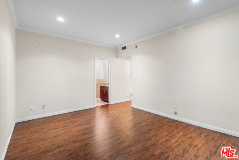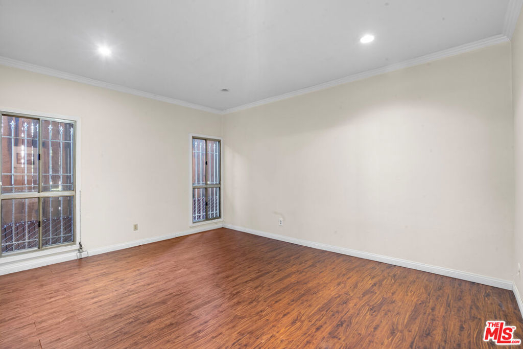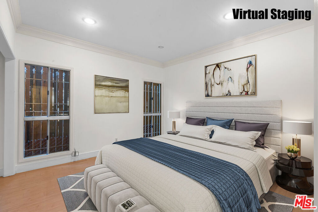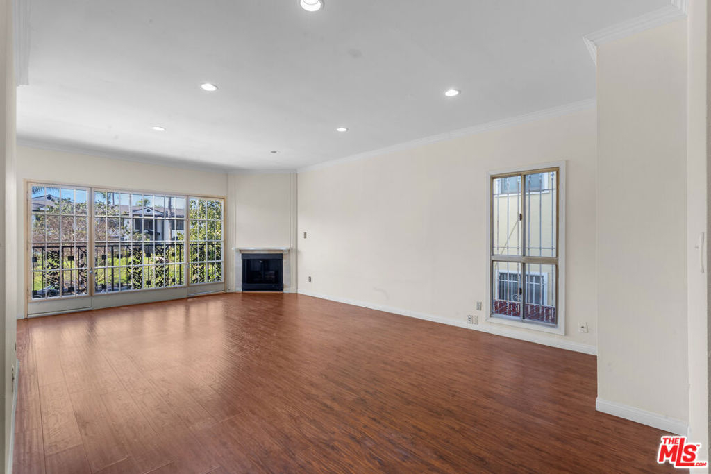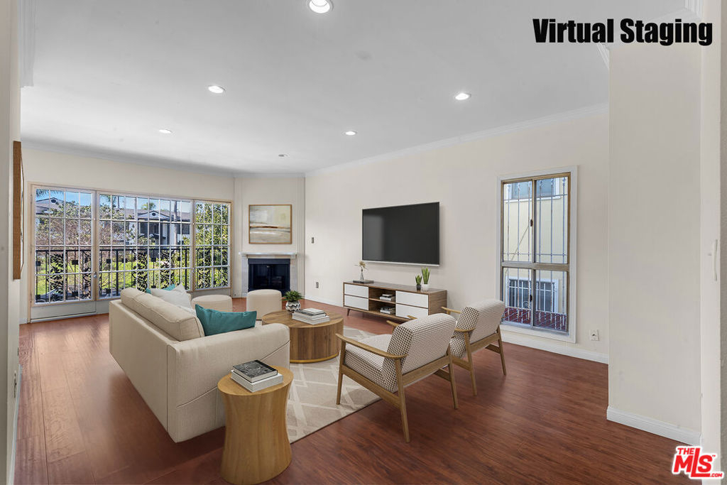 Fall in love with this bright, sun-drenched condominium in the lovely Windsor Village neighborhood, located in a charming boutique complex of only 9 units. This front-facing residence enjoys abundant natural light and peaceful treetop and walk-street views, creating an open, airy atmosphere throughout. The spacious living room features high ceilings, a cozy gas fireplace, and French doors that open to a private balcony, perfect for enjoying the tranquil surroundings. The extended balcony is one of the few in the building and provides a longer layout. Wood floors, recessed lighting, and an in-unit laundry add comfort and convenience. A formal entry leads to a generous living and dining area, complemented by ample closet space throughout the home.The versatile den offers flexible use as a home office, family room, or additional guest space. The spacious primary bedroom includes an en-suite bathroom and a walk-in closet.Additional highlights include a private garage with two tandem parking spaces, a valuable feature as not all units in the building include two parking spaces. In addition, the unit is not located on the ground level. Low HOA dues add to the appeal.Ideally located near Harold A. Henry Park, Larchmont Village, The Ebell Theatre, and the Marciano Art Museum, with convenient access to the Wilshire/Western Metro, major freeways, restaurants, shopping, and entertainment. Lovingly owned and maintained by the same owner for over 30 years, this is the first time the home has been offered on the market in decades. With just a few personal updates, this light-filled residence offers tremendous potential to make it truly your own.