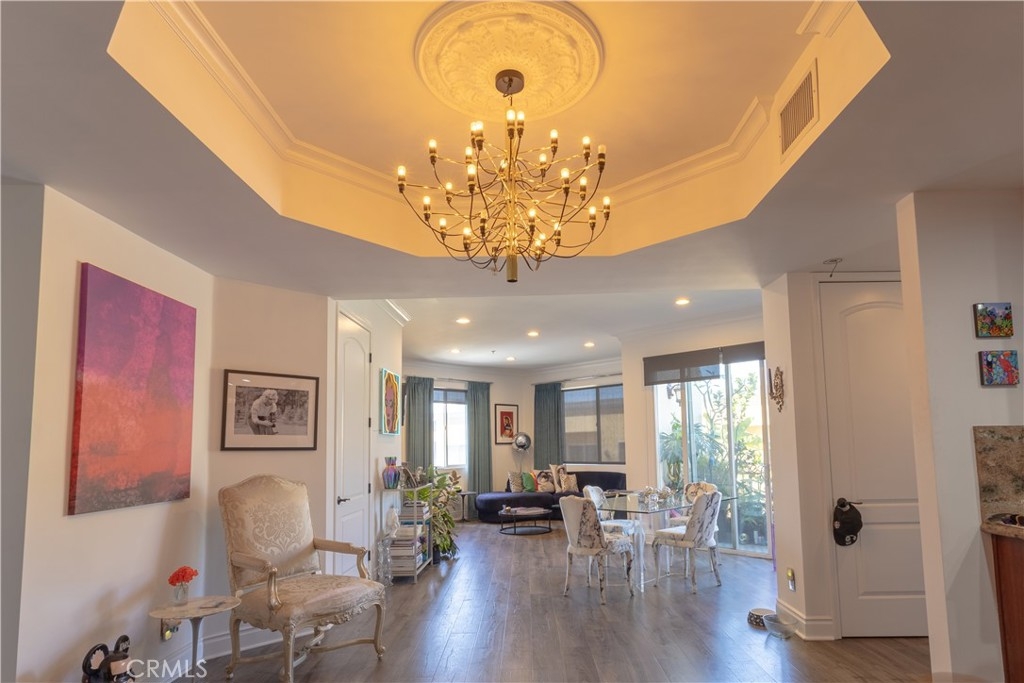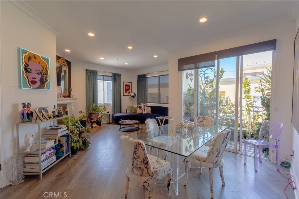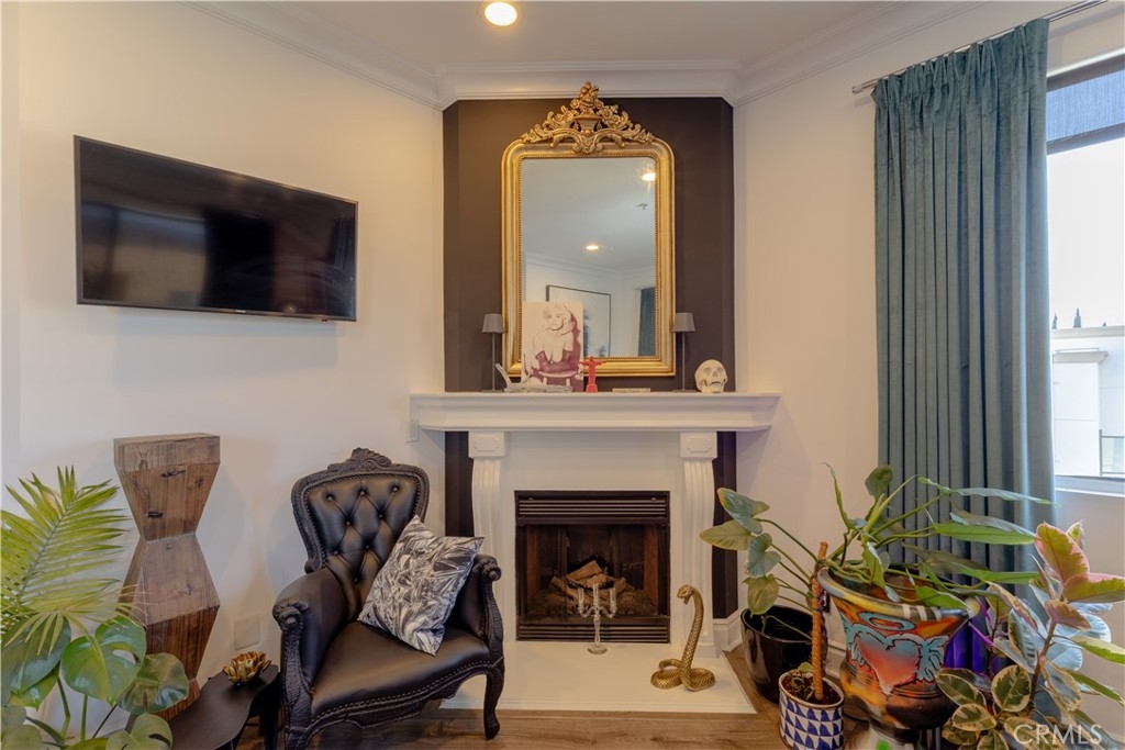 Welcome to a beautiful 3-bedroom, 2-bathroom condo nestled within the Hollywood Media District of Los Angeles. This residence offers a harmonious blend of modern luxury and timeless elegance, situated in one of Los Angeles' most vibrant neighborhoods. Step through the grand double-door entry into an expansive open-concept living space, adorned with, crown molding, and rich floors. The gourmet kitchen is a culinary enthusiast's dream, featuring stainless steel appliances, countertops, a beautiful tile backsplash. The generous bedroom layout ensures privacy and comfort. The primary suite boasts a spacious walk-in closet and an en-suite bathroom and dual vanities. The second bedroom is equally inviting, with easy access to a full hallway bathroom. Additional amenities include recessed lighting, an electric fireplace, in-unit laundry, and two tandem parking spaces in a secured garage. The building offers controlled access, a serene courtyard with a fountain. Located just north of Melrose Avenue, your minutes away from renowned dining, shopping, and entertainment venues such as Tao, Beauty & Essex, the Dream Hotel, and the W Hotel. Experience the epitome of Hollywood living in this exquisite condo—where style, comfort, and location converge.