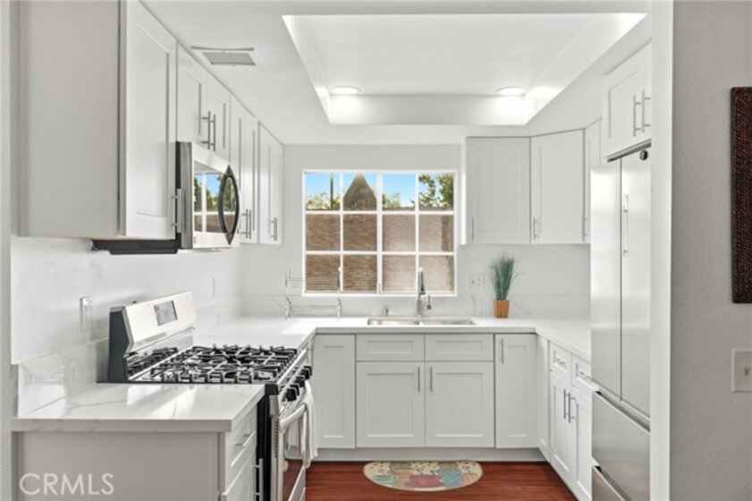 Step into the comfort of this beautifully designed townhouse-style condominium offering the perfect blend of privacy, space, and low HOA. Privately gated with commanding street presence, this condominium is nestled in a quiet, sought-after neighborhood of Windsor Village, offering a serene ambiance while being conveniently close to exceptional dining, diverse shopping options, highly rated schools and just minutes from Korea Town and Beverly Hills. Meticulously remodeled in January/February 2026 with new paint throughout the three levels, the home blends quiet sophistication and effortless style nestled behind gated community. Enjoy ultimate privacy with no neighbors directly below or above you, ensuring a peaceful retreat. The first level features two spacious bedrooms with a full bath and view of the park and neighborhood. The second level features an expansive and light-filled layout with soaring ceilings, oversized windows, kitchen, dining area, 1/2 bath, and a spacious living area with a fireplace that extends to a balcony with stunning views of the park. The open living and dining areas are filled with natural light and lead to your balcony overlooking the park and neighborhood, perfect for morning coffee or evening unwinding. Discover a meticulously remodeled dream kitchen, a culinary masterpiece featuring quartz countertops, sleek cabinetry, new floor, new light fixtures, and stainless-steel appliances that look like they belong in a design magazine. The second floor leads to the third level which features a versatile loft-style third bedroom complete with a closet, private balcony, and views of the park and neighborhood perfect for guests, a home office, or creative space. Laminate flooring throughout except the steps. Amenities include gated access, 2 tandem underground parking spaces, 2 garage storage cabinets, central air/heat. Just a few walks to Harold Henry Park, perfect for morning exercise, weekend relaxation, and evening stroll! Brand new A/C installed 2025 and a new water heater installed in January 2024! Thoughtfully designed for comfort and convenience, the home includes a laundry room with new washer/dryer. Here on South Lucerne Boulevard with its matured trees and beautiful flowers, the air carries the quiet confidence of a place where time slows down, not out of necessity, but out of sheer indulgence. A rare opportunity to enjoy a serene lifestyle in one of Windsor Village's most charming residential communities.