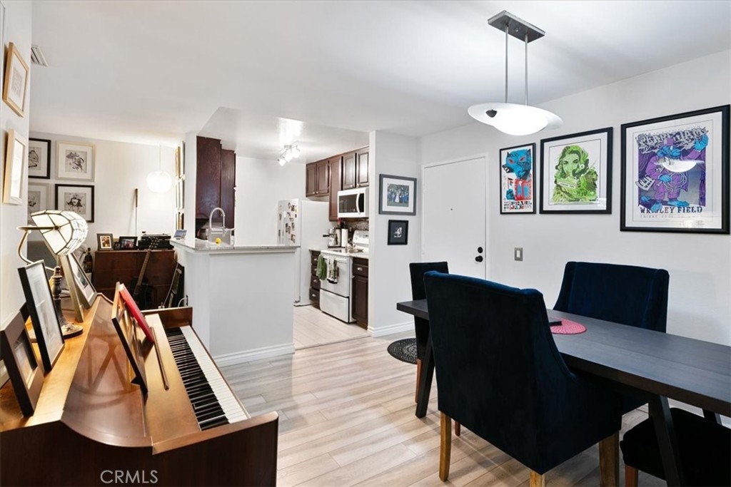 Welcome to Temple Terrace, a modern oasis in the heart of Los Angeles. This first floor home offers a rare opportunity to purchase a unit with a vast private patio that provides an incredible outdoor living space! Overlooking the pool, this feels like resort living. This stylish 2-bedroom, 1-bathroom residence also offers a spacious and comfortable living space, perfect for those seeking a blend of urban convenience and serene living. Step inside to discover a thoughtfully designed interior featuring a remodeled kitchen with a sleek breakfast bar, ideal for casual dining and entertaining. The open layout seamlessly connects the living area, creating a welcoming atmosphere for relaxation and gatherings. Enjoy the convenience of a washer and dryer in the unit and Central Heat/AC. Residents will appreciate the common outdoor space, including pool and spa, perfect for enjoying the California sunshine, and the convenience of an elevator for easy access. Parking is a breeze with 2 assigned garage parking spaces with EV charging available.