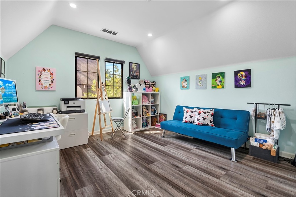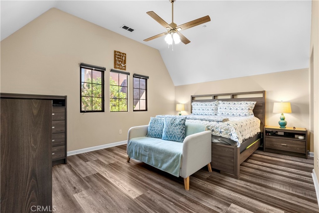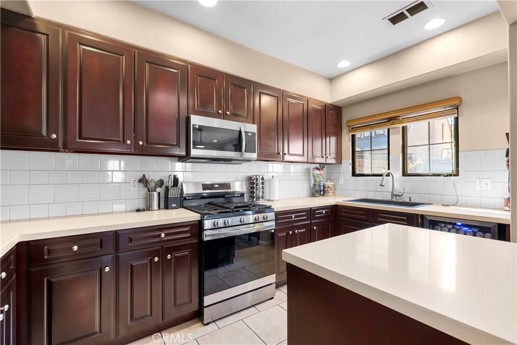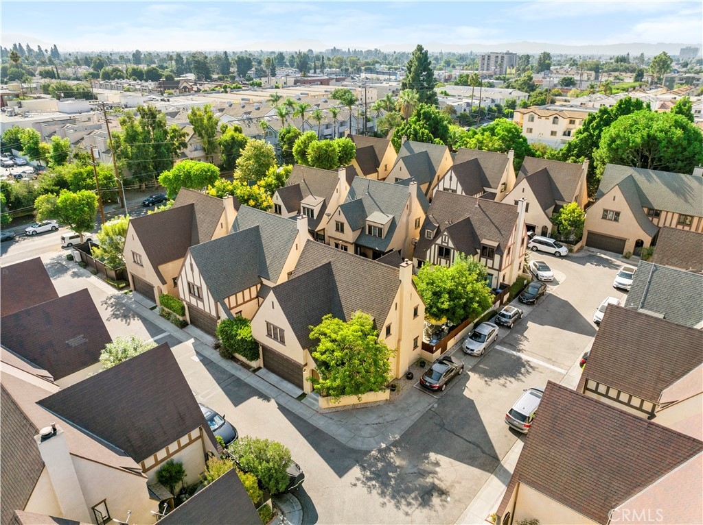 Rare Tudor inspired architecture condominium in the heart of Panorama City! No shared walls, quartz countertops, beautiful mahogany kitchen cabinets, and endless amounts of natural light. You will immediately feel at home in this inviting 3 bedroom 2.5 bath home with its open concept, angled ceilings and dont miss out on the primary bedroom with three closets!! Incredibly well kept with new; floors, stove, microwave, kitchen sink, can lighting in guest room/office, and garage shelving. Exterior has also been upgraded with iron fence and additional cemented area in the backyard, perfect for outdoor hosting under the lush trees. Conveniently located minutes to CSUN, eateries, shopping, public transportation and more.